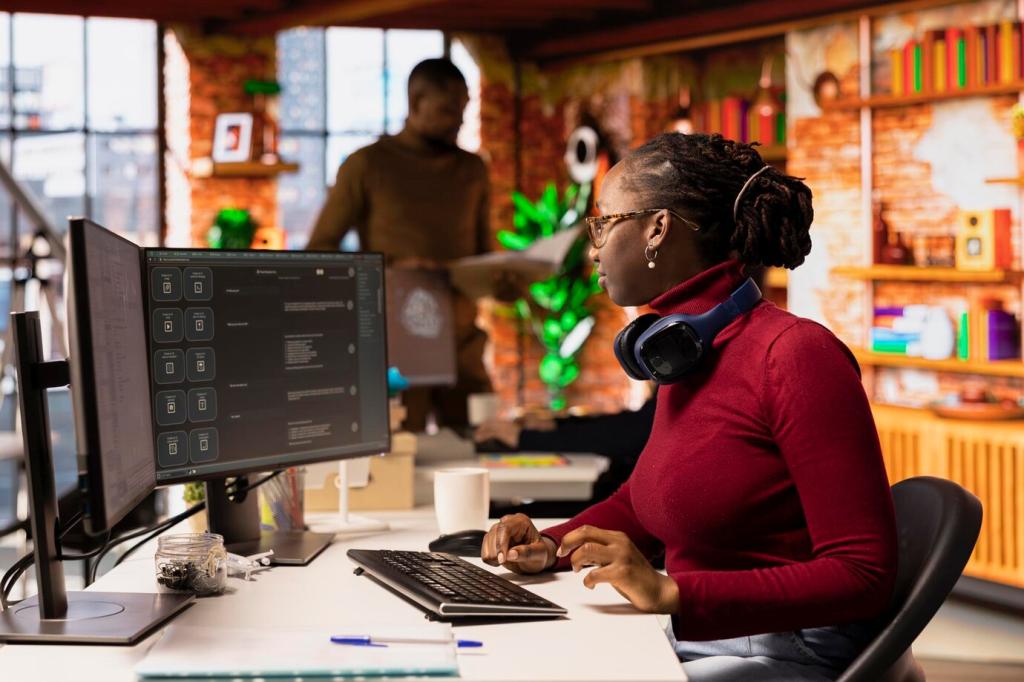 Mit leicht bedienbaren Baukasten-Tools erstellen Lernende interaktive Websites, Prototypen oder Datenerkundungen. Der Fokus liegt auf Problemlösen, nicht Syntax. Berichten Sie, welche Aufgabenformate Ihre Klasse motivieren. Wir ergänzen Ihre Beispiele zu einer offenen Ideensammlung für Projektlernen.